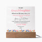 Combine modern technology and a heartfelt message with our Square Acrylic Plaque! This design is printed on crystal-clear premium acrylic and easily becomes the centerpiece of any room. And the contemporary design wouldn't be complete without its sleek wooden base, elevating the display that will instantly become a conversation starter. Create a memorable presentation when you upgrade to the LED wooden base! This is the ideal present for your beloved partner, family members, or dear friends on special occasions like anniversaries, birthdays, or any occasion where you want to express your love and appreciation in an unforgettable way. Let your loved ones know how much they mean to you by purchasing today!